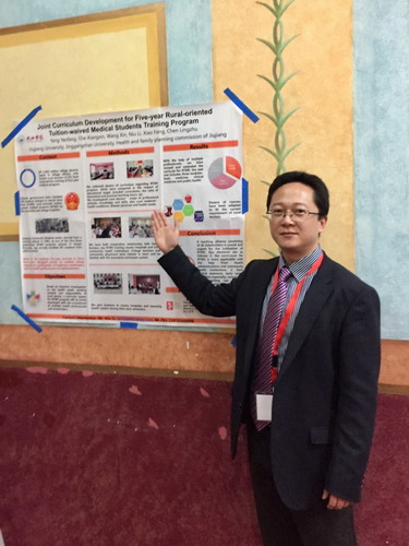 会议期间,车向新教授代表我校做了题为“Rural mentorship aiming for enhancing perspectives of humanism among Rural-oriented Tuition-waived medical students”的汇报与海报展示,并与来自突尼斯、美国、澳大利亚、牙买加、菲律宾等各国专家学者交流基础卓越医生的培养经验。牛力老师做了题为 “Joint Curriculum Development for Five-year Rural-oriented Tuition-waived Medical Students Training Program”的汇报与海报交流。