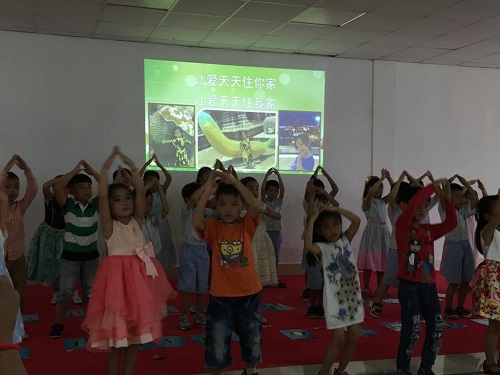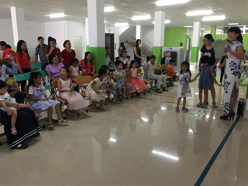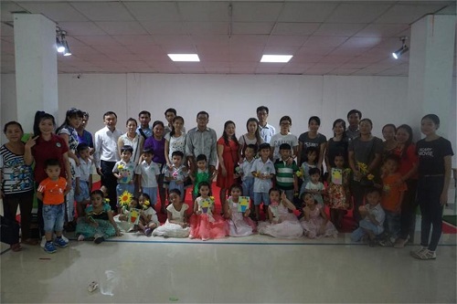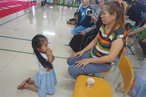 志愿者老师任亚玲带领的幼儿班开展了丰富多彩的音乐活动,以一首《我的好妈妈》开场,歌舞节目《让爱住我家》、《有你的地方是天堂》等表达孩子们对母亲的爱。紧接着“请妈妈喝茶”的环节让每个学生双手端着一杯茶送到母亲手里,孩子们拿着自己制作的鲜花给母亲行跪拜礼,表达对母亲的爱。母亲们看到自己孩子的表现,满脸都是感动和欣慰。