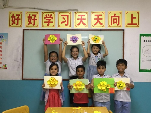 志愿者潘老师和学生漂亮的贺卡