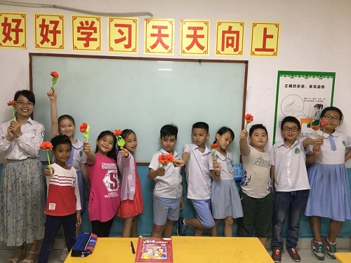 学生制作鲜花送给妈妈