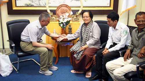 5月30日,由中国中医药出版社副社长林超岱教授率领的中国著名中医专家组一行4人访问了柬埔寨王家研究院孔子学院,柬埔寨王家研究院院长谢莫尼勒(H.E.CHEA MUNYRITH)和中方院长夏修龙代表柬埔寨王家研究院孔子学院热情接待了中医专家组。