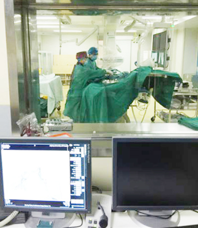 近些年随着肺血管介入技术的革新,精准医学概念的兴起,肺血管介入正走向更精准化的道路。临床医学院/附属医院呼吸一科密切与全球咯血介入诊治单中心手术量单第一的同济大学上海市肺科医院联系,先后派出3名医生学习相关血管介入技术,致力于打造一个肺血管介入团队。据呼吸一科医生介绍,目前的支气管动脉及栓塞术正朝向超选化发展,具备精细化、优选化特点:术前应用临床医学院/附属医院先进的256排CT增强CTA初步明确病因、依托影像分析平台后期处理确定支气管动脉(包括迷走支气管动脉、部分非支气管行体动脉)数量、开口与走行;术中于DSA实时引导下行支气管动脉及其他可能存在病变的血管选择性插管及造影、术中异常病变血管采用微导管超选择性插管并栓塞,从而能使咯血患者达到即刻止血,具有创伤小、无切口、无疼痛、恢复快、目的性强、有效安全等特点,同时避免了传统介入术式较高并发症的发生,缩短了患者的住院时间,节约了患者的医疗费用,真正为患者带来福音。后期该院呼吸一科将拟进一步依托上海肺科医院介入团队技术指导,开展肺动脉造影及相应的肺动静脉系统病变血管的介入诊治技术。
