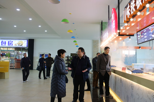 严主任一行先后对学生三食堂、中心仓库、艺苑餐厅、教工食堂进行了参观,蔡飞主任向客人一行详细介绍了我校食堂的经营模式,并就采购管理、验收制度进行了深入探讨和交流,并对学生食堂、中心仓库等升级改造建设情况进行了介绍,双方就食堂的服务管理经验进行了深入交流。