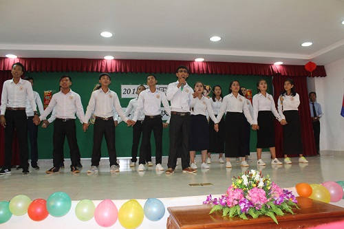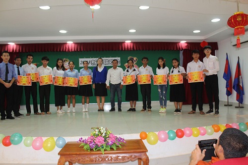 活动最后,韩桑林大学表扬了本学期表现优秀的中文学生,鼓励他们再接再厉。副院长殷帮郎(YIN Bamnang)和中文专业管理教师葛可云(Geky)为这些优秀学生们颁发了奖状。