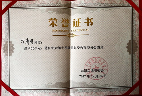 会上,黄菊花代表民盟江西省委为民盟九江市委常委、九江学院委员会主委梅龙宝教授颁发民盟江西省委教育委员会副主任任命书,为民盟九江学院委员会科技支部主委冷清明博士颁发民盟江西省委教育委员会委员聘书。