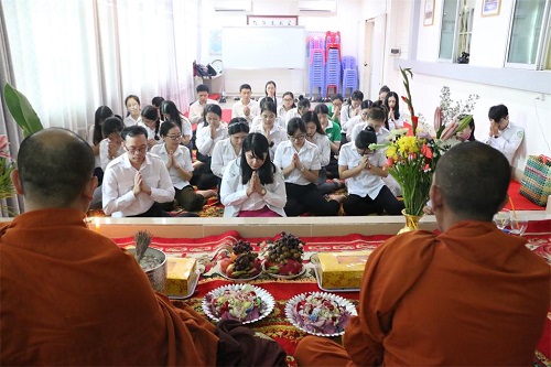 苏碧娜院长高兴地说,“今天为大家准备的都是具有柬埔寨特色的节目,大家要玩得开心,我们大家开开心心地过年。”下午2点,寺庙僧人前来孔子学院为柬埔寨孔子学院师生祈福,在神圣虔诚的诵经声中给现场的老师们送去了新年的祝福,祝福新的一年平安如意,中柬友谊万古长。