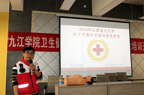 今年学校应急救护培训一共分三期,每期约100人,每期不少于8学时。第一期定于2018年4月,培训的对象以校辅导员、保卫人员、学生卫生健康服务队员为主;第二期定于2018年5月—6月份,培训的对象以学生助理辅导员为主;第三期定于2018年11月—12月,培训的对象以2018级学生为主。讲座现场气氛热烈,师生互动良好,学生认真聆听,及时记录。同学们在专业人员的指导下,结合所学知识,活学活用,利用模拟人等教具现场练习,注重理论和实际相结合,较好的掌握了心肺复苏、创伤包扎等急救操作要领。现场工作人员还分发了《现场应急救护手册》。培训结束后并将对学员进行考核,考核合格者可获得江西省红十字会颁发的救护员证。