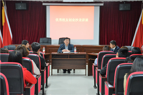 曹钟安副院长介绍了两位学长的经历与业务方面的优异成绩后,钟检长学长分享了自大学以来的经历,他建议同学们趁年轻多学习、多读书、多思考。胡国庆学长结合自身就业、创业经历和同学们分享了他的成功经验,希望同学们学会把握机遇、创造机会,在就业、创业的道路上要多一点勇气和自信,要持之以恒,要有不忘初心的态度与信念,才能创造更好的未来。