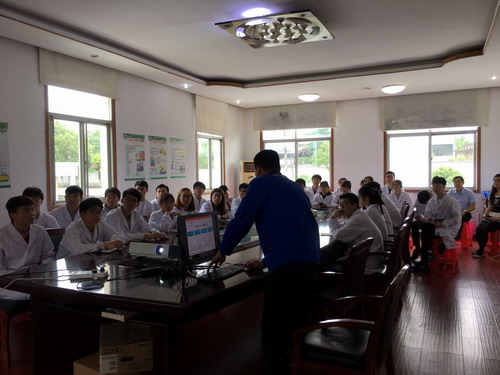 见习前,石药集团江西金芙蓉药业股份有限公司质量副总邓胜,为同学们介绍了企业概况:石药集团全称石家庄制药集团有限公司,总资产240亿元,员工19000人,“石药”品牌2005年以来连续十度入选“中国500最具价值品牌”。石药集团江西金芙蓉药业2015年2月通过新版GMP认证;2015年10月通过出口认证,成为九江市唯一获得出口许可的药品生产企业;2014年12月通过江西省中药提取物现场认证,是江西省首家通过提取物备案的生产企业,江西省最大的中药提取物生产企业,年产值1.5亿元。同时,强调了见习要求和注意事项。