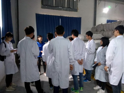 本次见习分为三个小组,分别对液体制剂车间、综合提取车间及仓库、质检、研发实验室进行分批见习。液体制剂车间由陈宣耀副主任负责讲解,主要介绍了中药合剂、中药口服剂、糖浆剂等中药制剂的有关工艺及质量控制。综合提取车间由陈亮亮副主任带队,介绍了煎煮法、渗漉法制备浸出制剂的工艺流程及纯化水的制备工艺。仓库、质检和研发实验室分别由邓志强和江翠玲负责,介绍了包括原辅料的进厂和领用、取样、中药材的辨认等相关知识,同时对样品的留样、检验及主要研发仪器设备进行了详细的讲解。在见习过程中,同学们认真听讲,不时做着记录,并提出各种问题,企业负责人都进行了详细的解答,取得了良好的教学效果。