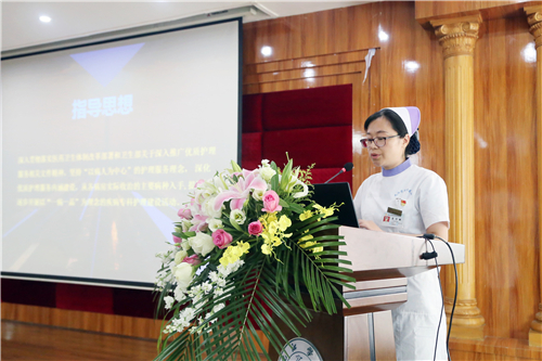 随后,品管圈大赛一等奖获得科室东A七病区、一病一品试点科室东B七病区、眼科病区进行了成果展示。她们通过制作精美的PPT、详尽的语言对各自活动的开展情况做了充分的汇报,既展示了各自科室的辛勤成果,也为大家带来了新的知识与技术,使在场护理人员受益匪浅。