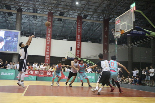 伴随着会计学院同学胜利的欢呼声,拉拉队又为男子组比赛献上一支热舞。比赛开始不到10分钟,双方分数就都达到两位数。与上场比赛的势均力敌不同,本场比赛的分数可谓是差距悬殊。双方还未僵持多久,经管学院以迅雷不及掩耳之势将差距扩大到11分。观众似乎也感受到了化环学院队的压力,纷纷为队员敲鼓打气。随后经管学院稳扎稳打一直保持较大的优势,最终以23分的差距夺得男子组冠军。
