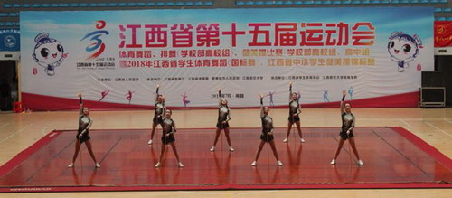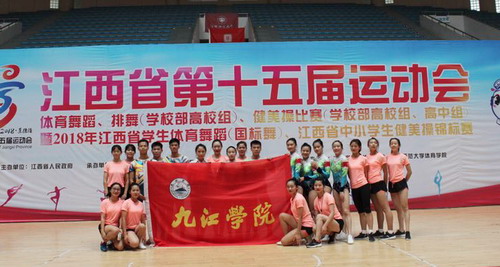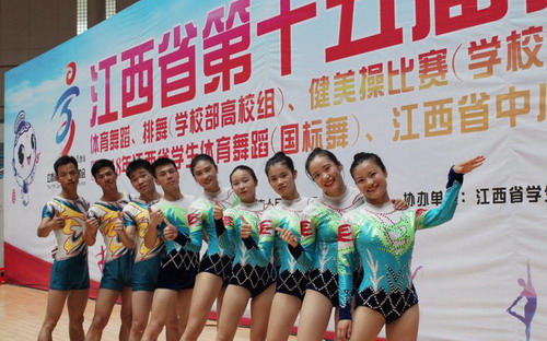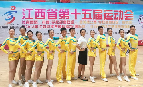 7月10日-11日,由江西省人民政府主办,江西省教育厅、江西省体育局、景德镇市人民政府承办的江西省第十五届运动会健美操比赛(学校部高校组、高中组)在江西师范大学瑶湖校区体育馆举行。经过两天的激烈角逐,我校健美操代表队不畏强手、奋勇拼搏,在众多高校中,获得高校本科乙组“有氧踏板”第一名,斩获金牌,为学校争得了荣誉,也充分证明了我校健美操专业的实力。
