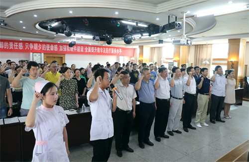 院领导班子同全体新员工一道,进行了庄严而隆重的希波克拉底医生宣誓和南丁格尔护士宣誓。