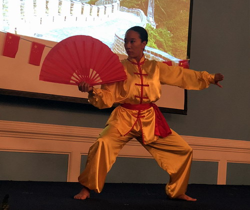 来自亚特兰大舞蹈团的艺术家在飘扬的国旗下为来宾奉上了一场精美绝伦的舞蹈盛宴,藏族舞、蒙古舞、纸伞舞、秧歌舞、彩虹舞……嘉宾们看得如痴如醉,他们踊跃登台与艺术家互动,现场学习功夫扇技法,把活动推向了高潮。庆典在优美的中国民歌声中圆满结束,宾客们不舍离去,争相在活动现场合影留念。