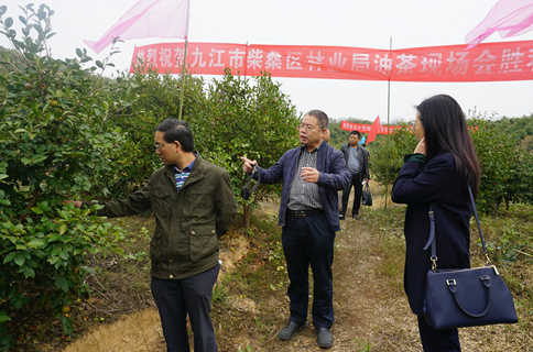 此外,10月19日,油茶调研组赶赴九江市柴桑林业局油茶现场会,拜见来浔的中国林科院国家油茶首席专家,博士生导师