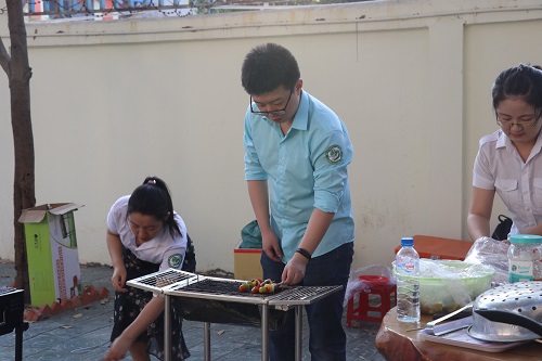 戴嘉维老师带领几位老师为大家精心制作了烧烤。为了精益求精,戴老师还特意征询了大家的意见和建议,不断改良烧烤的口味。虽然烟熏火燎,又热又脏,但是她表示能为大家做一顿丰盛的大餐,再苦再累她都愿意。