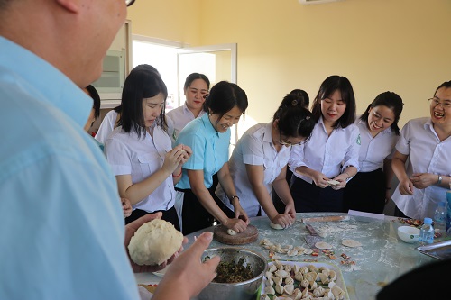 本次活动从下午三点正式开始。为了包出美观整齐的饺子,刘建玲老师示范了擀皮、包馅、水煮三个步骤,心灵手巧的老师们不一会儿就学会了其中要领,很快就包出了精致的水饺。春节的饺子寓意红红火火,团团圆圆,大家都说自己包的水饺最好吃。