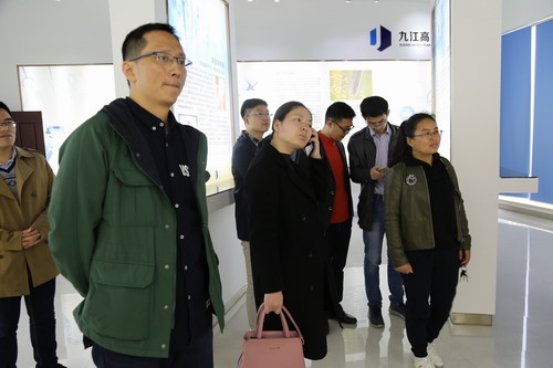 在九江高科制药技术有限公司,参观了公司新产品展区和实验室,对企业科研投入和新产品开发等情况进行了深入了解。梅龙宝向高科制药的负责人介绍了随行的生物、药学、医学、化学、材料等教授博士,希望以本次科技入企活动为契机,建立与高科制药企业互动交流机制,就新产品研发等开展项目合作,为企业发展服务。