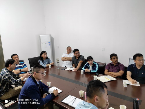 5月14日,九江市林业局正县级干部陆主生、市油茶办主任张阳展、副主任许伟明,药生学院副院长、油茶中心负责人王春娥博士、何正盛博士、何刚博士、王瑞凯博士、吴杨博士、周会汶博士、Ahmed博士、张红芳老师、张弦老师一行赴江西神州通油茶科技有限公司考察油茶产业发展并商讨校企合作事宜。