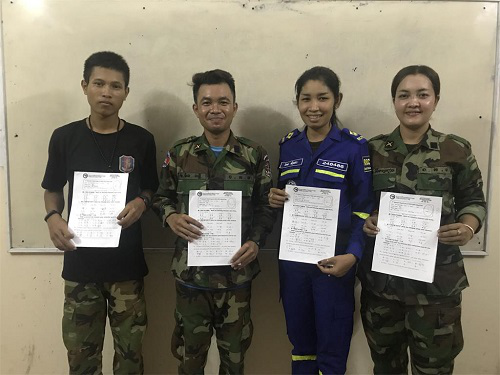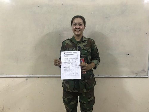 两位学员代表也表达了自己学习中文的目的和想法。金思文(SOK KIM SREANG)少尉说他想在今年考过HSK4级,争取拿到孔子学院奖学金去中国读书;欧递尼(Ody Nick)上校说自己学习中文是为了更方便工作,希望有机会能够去中国的军队参观交流。
