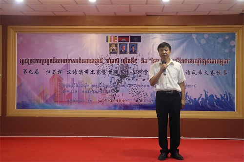 柴克清院长在开幕式上致辞时提到,“江苏杯”是一个非常好的机会,其主要目的是为了提高所有参赛选手的汉语学习积极性及其汉语水平。其次,“江苏杯”也是促进中柬两国语言文化交流的良好平台。此次比赛中,选手们热情高涨,报名人数创历史之最。同时,柴院长希望各位选手用平常心参与此次比赛,发挥自己最好水平,展现良好风采。最后,柴院长对此次比赛的组织者及七位评委致以了最诚挚的感谢,并预祝此次比赛圆满成功。