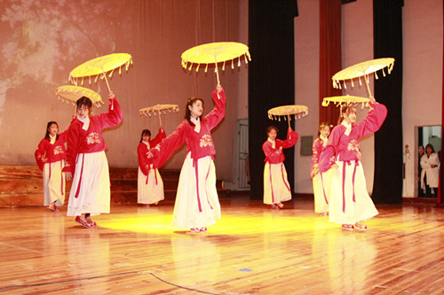 真正把晚会推向高潮的便是由礼模队带来的舞蹈《金陵十三钗》,在这建国七十年之际,基础医学院礼模队用一舞《金陵十三钗》为祖国献礼、为爱国歌颂,优美的舞姿,认真的神态,把观众带入了那个战火纷飞的年代,警笛长鸣,血泪横飞,再一次深入那段凄惨悲愤的历史,希望的只是,如今的我们,勿忘国耻,珍惜生活,为祖国繁荣事业贡献自己的一份力。
