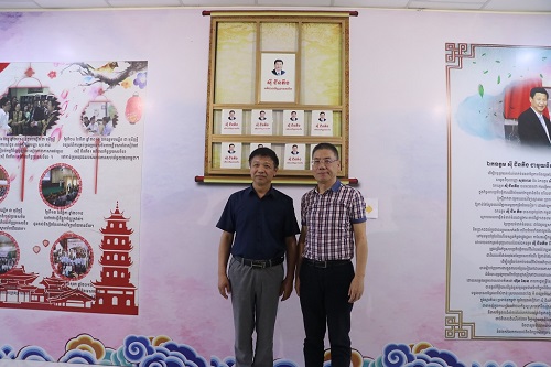 柴院长带领访问团参观了孔子学院芳华楼,从孔子学院图书馆到电子阅览室,从行政办公室到学生教室,柴克清院长向来访代表团进行了详细全面的介绍。此外,双方针对柬埔寨当地华文教育情况和我院课程项目进行了深度探讨。