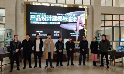 12月24日,17级产品设计专业“计算机辅助设计Ⅲ”课程作业汇报展在艺术学院一楼大厅开幕。艺术学院党委书记王春生,副院长欧阳时来,副书记沈阳,以及教学科研科负责人汤艳、实验室负责人於勤和相关师生代表共同参加了开幕式,开幕式由环艺教研室主任吴小亮主持。