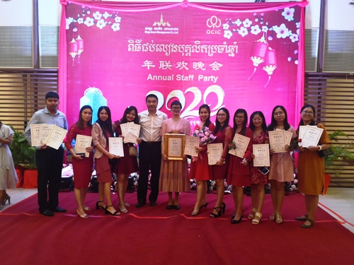 1月11日晚,柬埔寨皇家科学院孔子学院中方院长柴克清、公派教师甘敏、马剑应邀出席加华集团年度晚会。