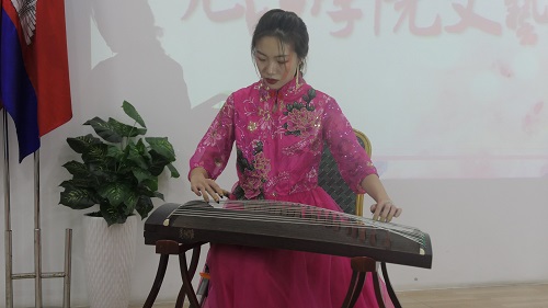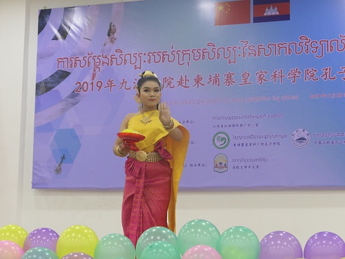 为了迎接远道而来、辛苦演出的朋友们,促进中柬文化交流,亚欧大学中文系学生也精心准备了演出节目。金箍棒表演《齐天大圣》和中国古典舞《初见》都让人眼前一亮,回味悠长。中柬师生同台献艺,共同谱写中柬友谊新华章,是对柬埔寨皇家科学院孔子学院成立十周年的最好献礼,也是对中柬一家亲的最好祝福。