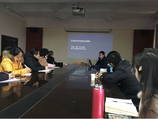 16日下午,王群勇教授讲座主题为《社会科学中的相关与因果》。在讲座第一阶段,他阐述了社会科学中的相关关系与因果关系,指出社会学中对因果推断的难点在于有许多不可观测的混淆因素,政策评估的核心任务在于如何估计反事实。在讲座第二阶段,他介绍了大数据机器学习在社会科研究中的应用,机器学习分为监督学习和非监督学习,大数据不仅量大,而且多元化,非结构化的数据为科研提供了无穷无尽的数据源。