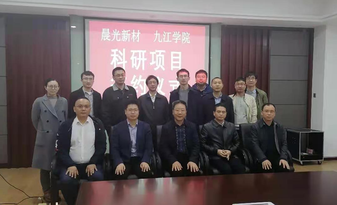 出席签约仪式的有九江市工信局副局长孙细平,晨光新材料行政副总经理葛利伟、研发部经理杨静、研发部我校15级应用化学专业毕业生曾小龙工程师,我校化工学院彭游、王建国教授,胡华南、王常清、张苡铭、刘东升及油茶中心高银祥5位博士。在项目签约结束后,各位老师又参观了晨光新材料研发实验室,并和相关技术人员进行了交流。