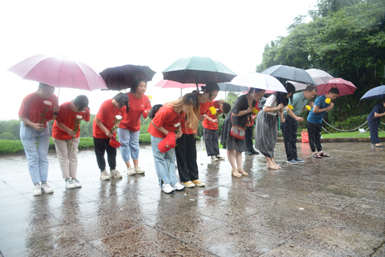 7月2日,服务队前往共青城胡耀邦陵园瞻仰了耀邦陵园,缅怀革命先辈。一路上,队员们踏着象征胡耀邦同志人生旅程的73阶,感受着耀邦同志艰苦奋斗的革命精神和忧国忧民的爱国精神。队员们怀着无限崇敬的心情向胡耀邦墓三鞠躬并献上鲜花,表达了最深切的问候与崇高的敬意。