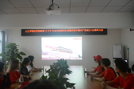 7月1日上午,服务队来到共青城市妇女联合会,观看庆祝中国共产党成立100周年大会的直播。