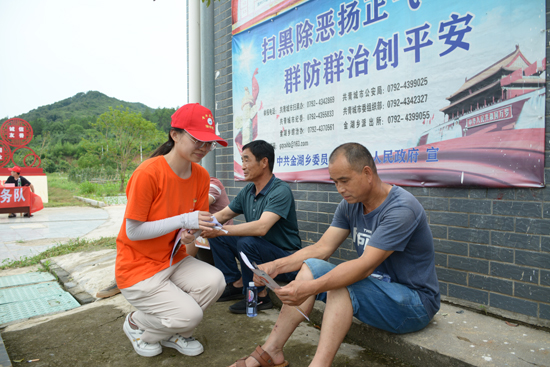 7月4日至5日,服务队来到共青城市金湖乡固村党群服务中心和五合村党群服务中心,对当地村民进行党史宣传及调研。