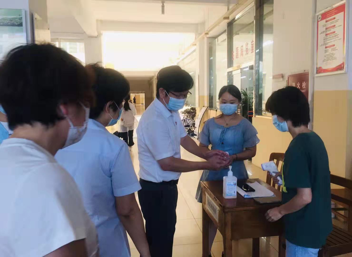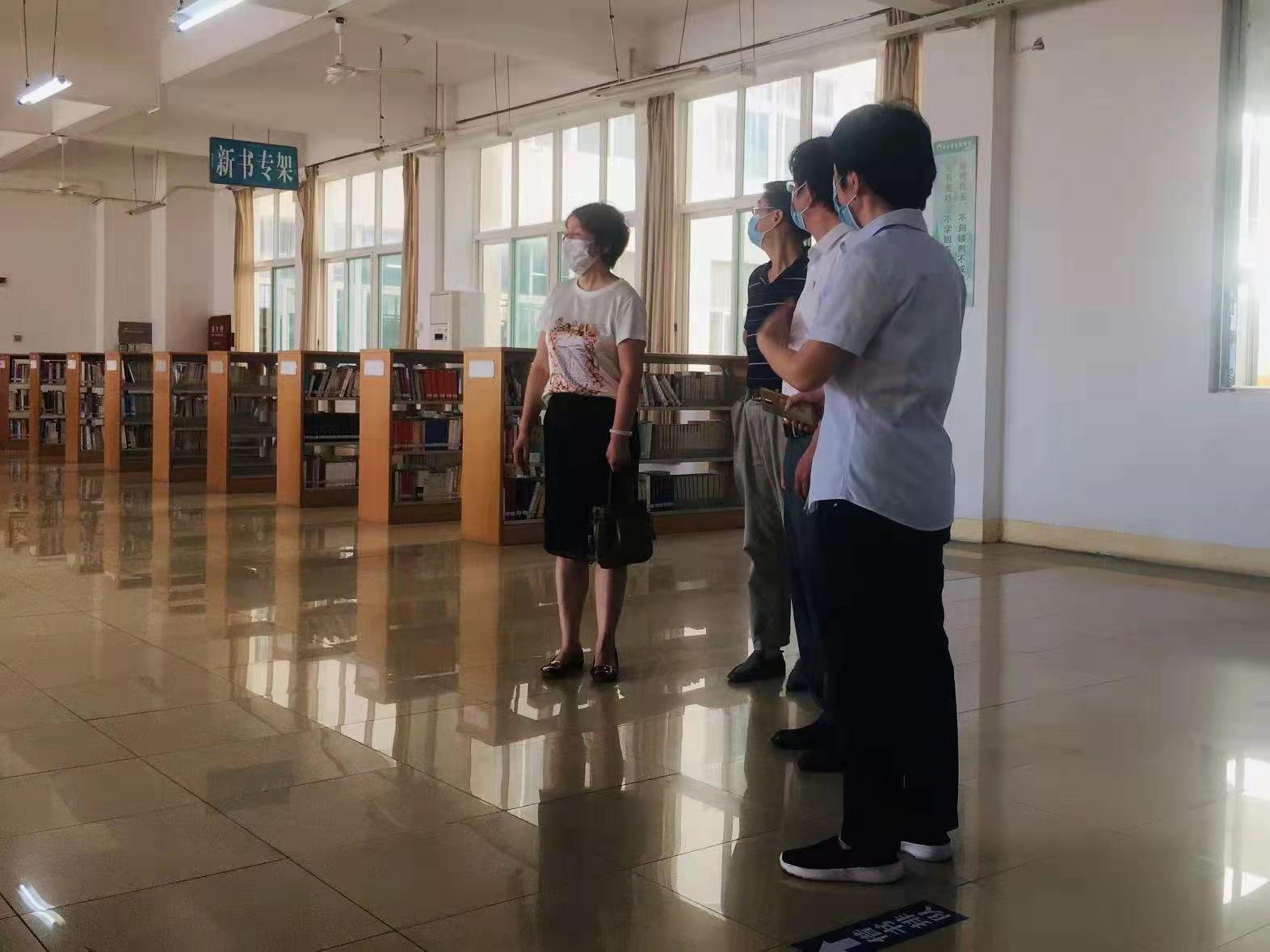 图书馆负责人向王万山介绍了馆内近期的防疫工作和开学初的各项工作。王万山肯定了图书馆的各项工作,并对防疫工作提出了要求和建议,同时对正在装修的多功能厅的使用和管理提出了指导性意见。