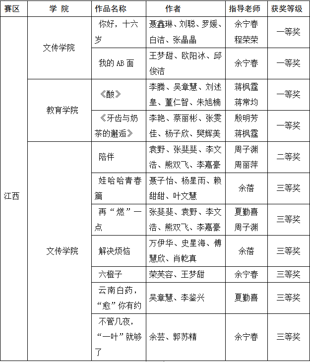 江西赛区获奖名单