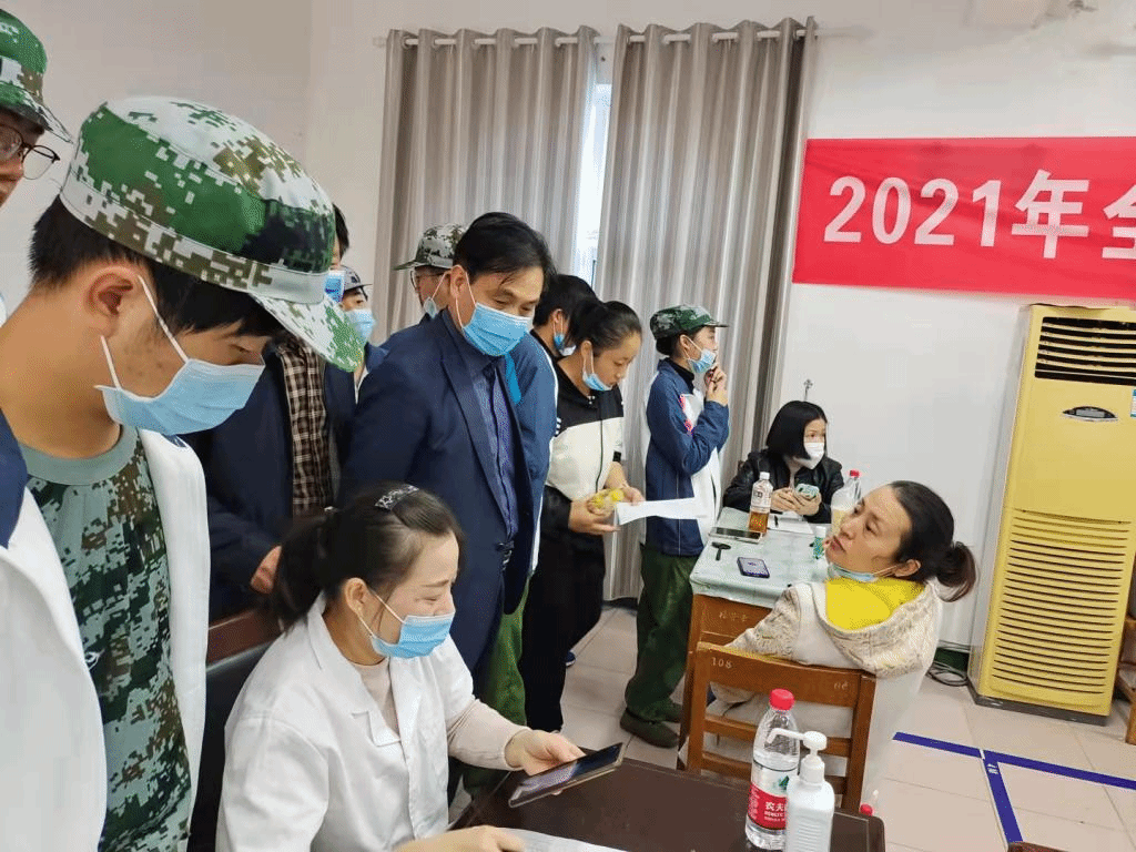 为了全面贯彻落实国家教育部颁发的《全国学校卫生工作条例》《普通高等学校学生管理规定》,根据江西省《关于规范全省大中学校学生健康体检项目及费用标准的通知》(赣教体艺字【2011】32号)和《九江学院学生管理规定》的要求,在学校的统一安排和部署下,在党院办、学生处、团委、后勤管理处、各校区和各二级学院等单位的大力支持下,我校2021年级学生入学体检复查工作于10月27日拉开序幕。期间,副校长杨耀防在校医院负责人等的陪同下到现场指导新生入学体检复查工作。
