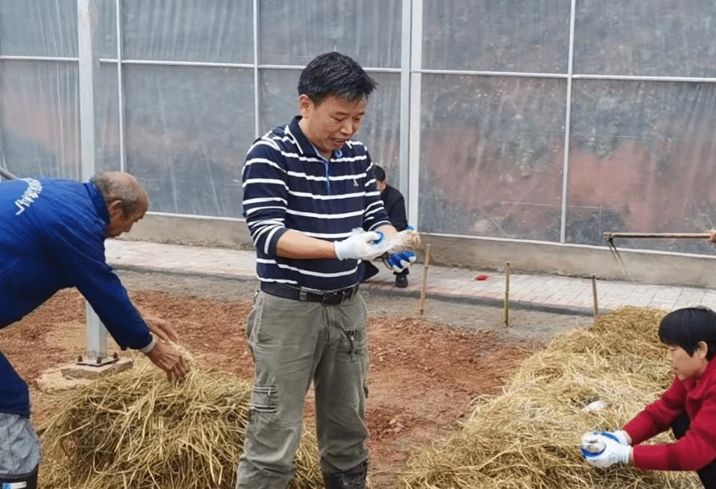 在武宁县鲁溪镇双新村食用菌栽培大棚,为抢抓有利天气,实施好大球盖菇种植工作,11月6日,药生学院陈晔教授亲身示范,为农户传授秋冬季大球盖菇种植技术。