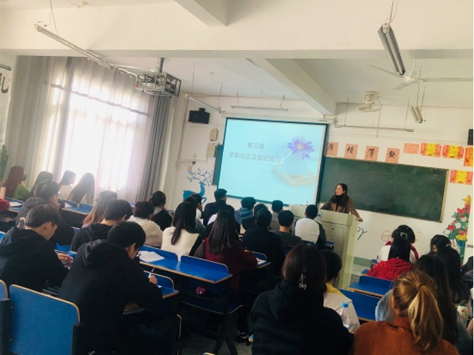 为使学生增强就业意识、转变就业观念,帮助毕业生树立正确的求职观念,做好就业准备,电商学院坚持为全体毕业生提供全方位的就业指导服务,讲好每一堂《大学生就业指导课》,学院学生科黄佳宇老师、毕业班辅导员罗刚老师针对大学生就业即将面临的问题,结合自身丰富工作经验为同学们精心设计属于毕业生们的专属就业指导课,教导同学们如何进行职业规划、简历制作,传授求职面试技巧、开展就业安全教育等。课后,同学们都纷纷表示此课程对他们的未来职业发展具有重要的指导意义,老师们的讲解深入浅出,大家对于未来不再迷茫,而是更多了一份坚定、一份坚守。