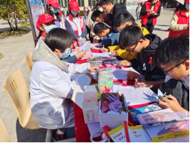 11月26日上午,校医院、五里街道社区卫生服务中心,在我校浔东校区食堂门口开展艾滋病现场宣传活动。