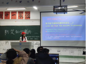 11月26日至12月1日晚自习期间,校医院指导唯医志愿服务队下到到各二级学院班级开展艾滋病宣传活动。志愿者们详细讲解了“什么是艾滋病”、“艾滋病的传播途径”、“艾滋病病毒感染者和艾滋病病人有哪些不同”等知识,并指导了大学生如何预防艾滋病等方面的防治。活动加强学生们对艾滋病的了解、有利于建立良好的健康行为,减轻对艾滋病病毒感染者和病人的恐慌与歧视心理。