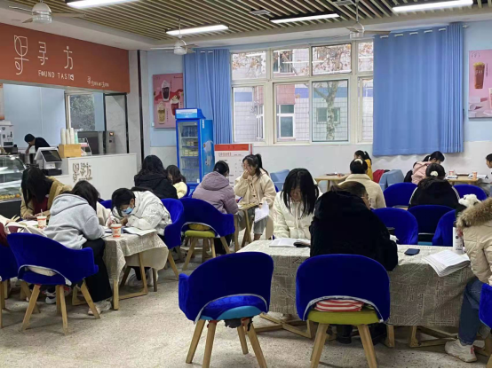 “饮服中心将倾力打造食堂服务育人的良好环境,让色香味美从食堂开始,让环境服务育人从食堂起步。”据饮食服务中心负责人介绍,除“早读会”活动外,饮食中心在期末复习阶段还会开放部分有条件的食堂供同学们复习备考。