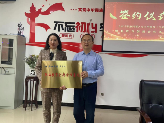 为助力国家构建现代职业教育体系,拓展校际联合教育教学研究平台,探索高等院校助力职业学校教学质量提升,我校医学院携手九江市华科技工学校开启职业教育创新合作与质量保障研究,4月13日上午,九江学院医学院“职业教育创新合作基地”在九江市华科技工学校挂牌签约。