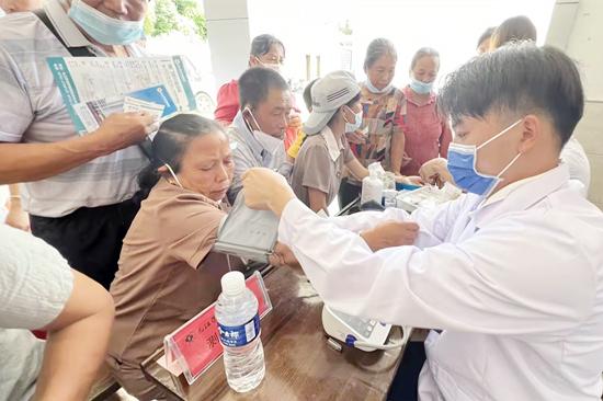 “医路护航”博士义诊团  “党建领航,医路护航”。7月1日,附属医院党政领导带队“博士士义诊团”专家送医下乡,前往都昌县大港镇进行健康义诊。活动现场,医护们向参加义诊和过路群众发放健康教育宣传资料,宣传疫情防控知识。医务人员认真细致地为前来咨询的居民检查身体、测量血压,耐心解答各种疑难问题,讲解疾病的预防、治疗及健康科普宣传,积极引导群众科学就医,普及医学常识及健康知识,倡导健康生活方式,让群众在家门口享受到了高水平的综合医疗服务。