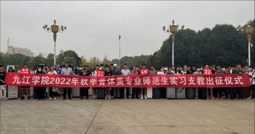 根据省教育厅统一部署,8月30日上午,我校举行了2022年秋季音体美专业师范生实习支教出征仪式,此次我校音体美支教活动共安排155名音体美专业师范生,前往九江市十一个县(市区)51所乡村小学开展实习支教活动。教务处、艺术学院、体育学院负责人和专业带队老师和全体实习支教学生参加了出征仪式。