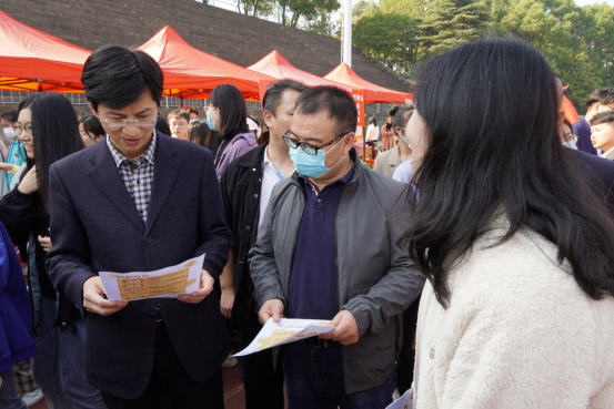 为贯彻落实党中央、国务院关于稳就业保就业决策部署,积极搭建用人单位和毕业生就业双向选择平台,全力促进我校毕业生更加充分更高质量就业,11月6日上午,由九江学院主办,招生与就业处、文学院、外国语学院、理学院、教育学院承办的2023届毕业生联合专场招聘会在我校主校区南区田径场举行。副校长查振华、纪委书记李广欣到现场指导,招生与就业处负责人,文学院、外国语学院、理学院、教育学院党政负责人陪同。