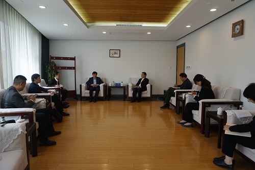 王万山分别向语合中心和基金会介绍了我校和皇家科学院孔子学院的基本情况,并就孔子学院近期开展的工作和面临的困难进行了汇报,他表示,我校一直高度重视孔子学院的工作,为孔子学院的发展提供了大量的人力和物力支持,希望语合中心和基金会一如既往的支持皇家科学院孔子学院的建设,从师资派出、教学资源、孔院奖学金和本土教师培养等方面为孔院提供帮助。王万山还邀请语合中心和基金会领导赴柬埔寨参加我校和皇家科学院共同主办的中柬友好研讨会。