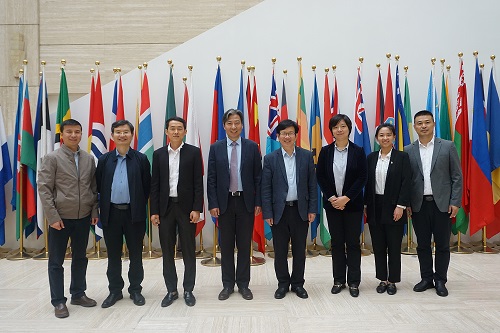 4月21日,副校长王万山在国际合作交流处负责人和我校合作建立的柬埔寨皇家科学院孔子学院中、柬方院长的陪同下拜访了教育部中外语言交流合作中心(以下简称“语合中心”)和中国国际中文教育基金会(以下简称“基金会”),语合中心副书记宋永波、基金会副秘书长郁云峰会见王万山一行。